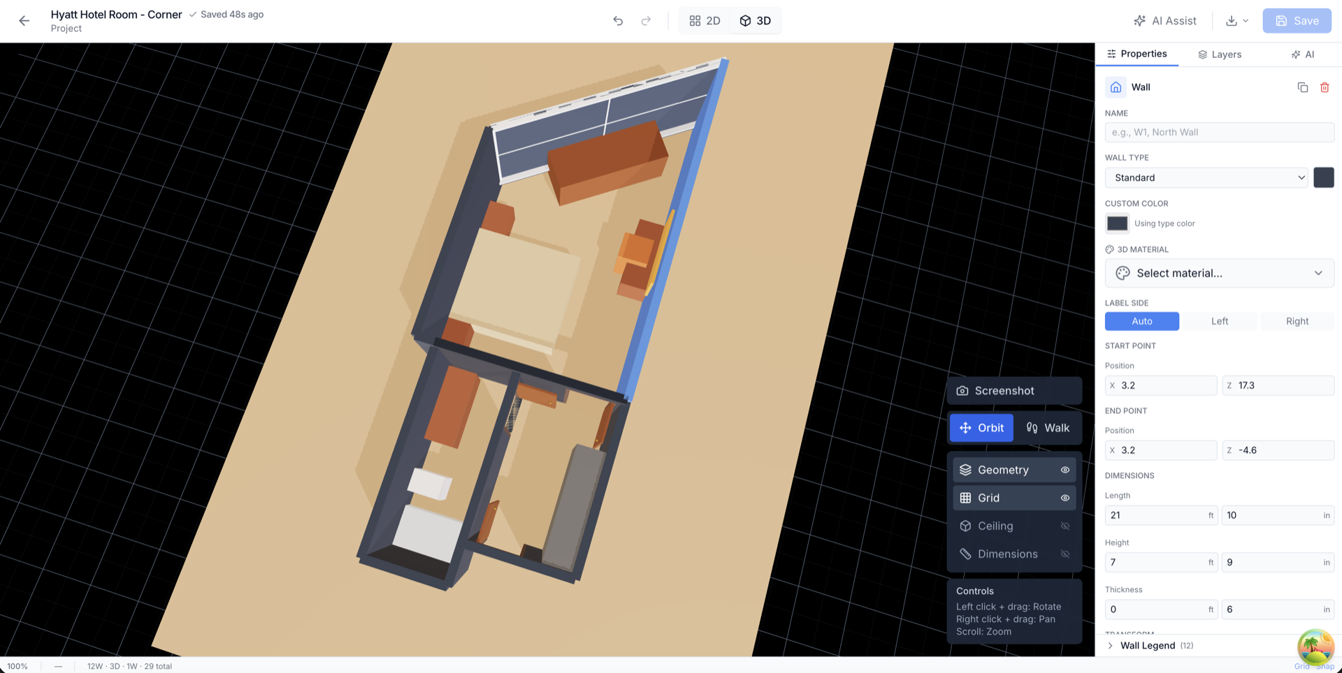 - Edit walls, doors, windows, and furniture